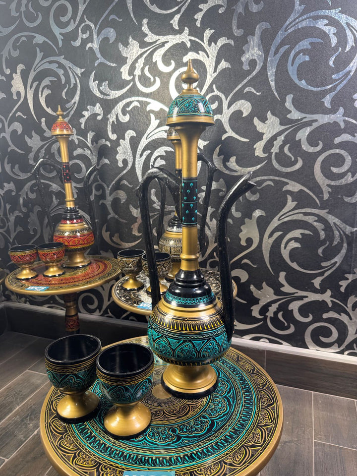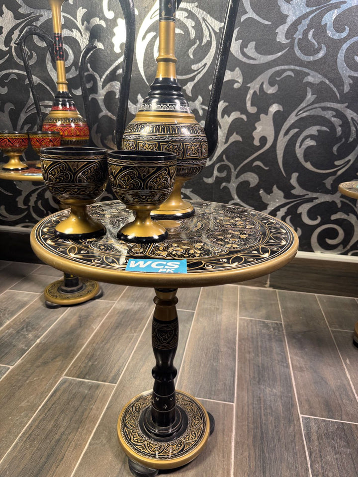 Elevate your table décor with this exquisite Surahi Set, adorned with intricate Naqshi (engraving) craftsmanship. Carefully handmade by skilled artisans, this set brings together tradition, elegance, and functionality.